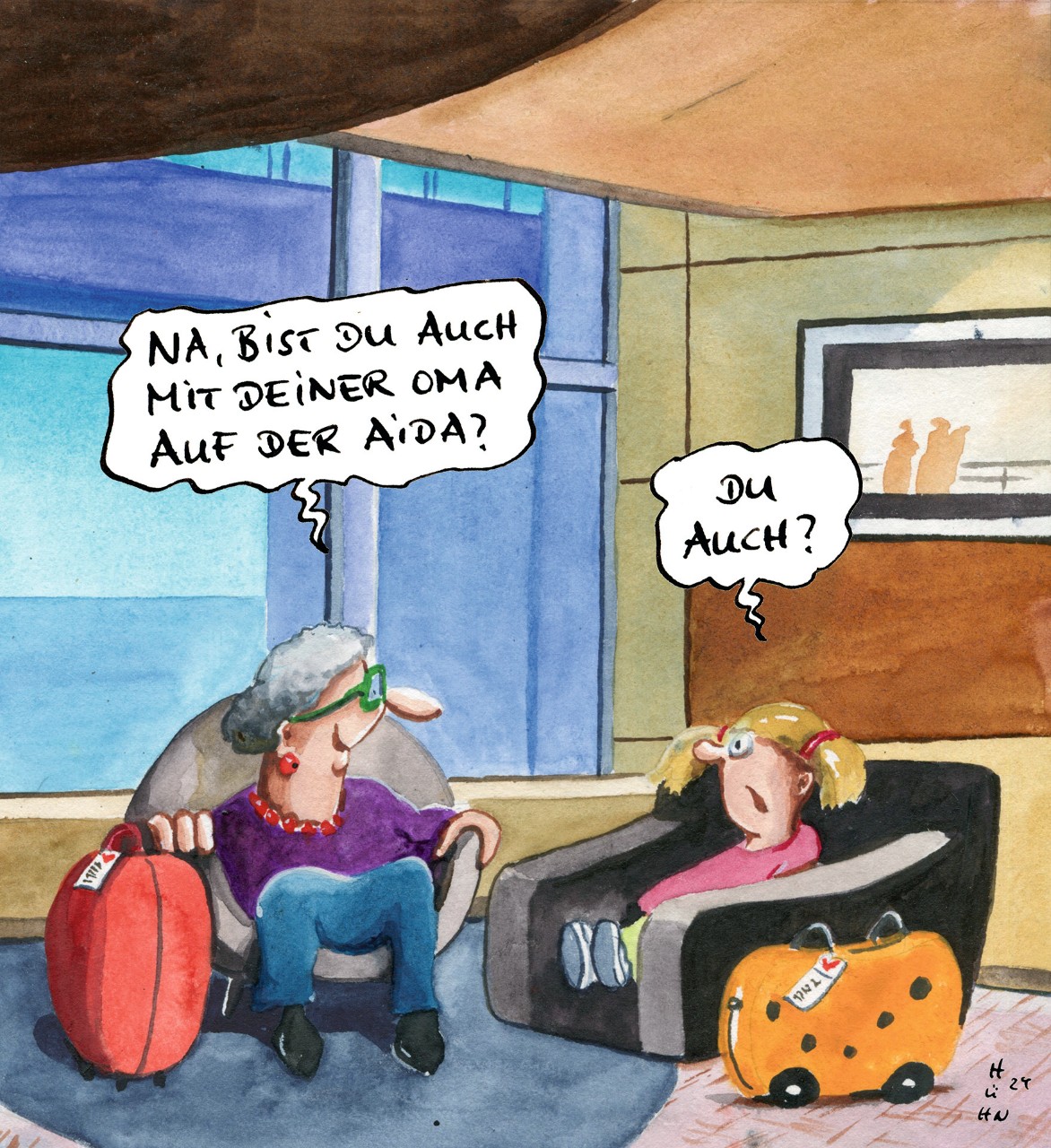 Leinen los für die Lachmuskeln. Die Cartoonist:innen Ruth Hebler, Michael Holtschulte und Mathias Hühn haben lustige und kuriose Situationen von Bord eingefangen und mit spitzem Humor interpretiert. Ob Sie sich in den 70 Cartoons wiedererkennen?