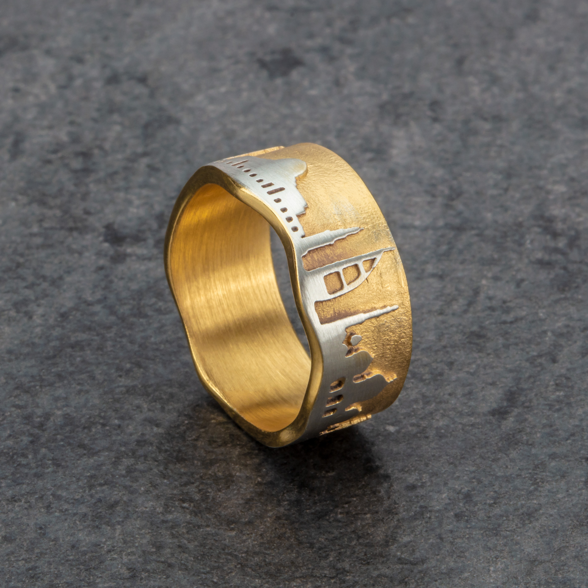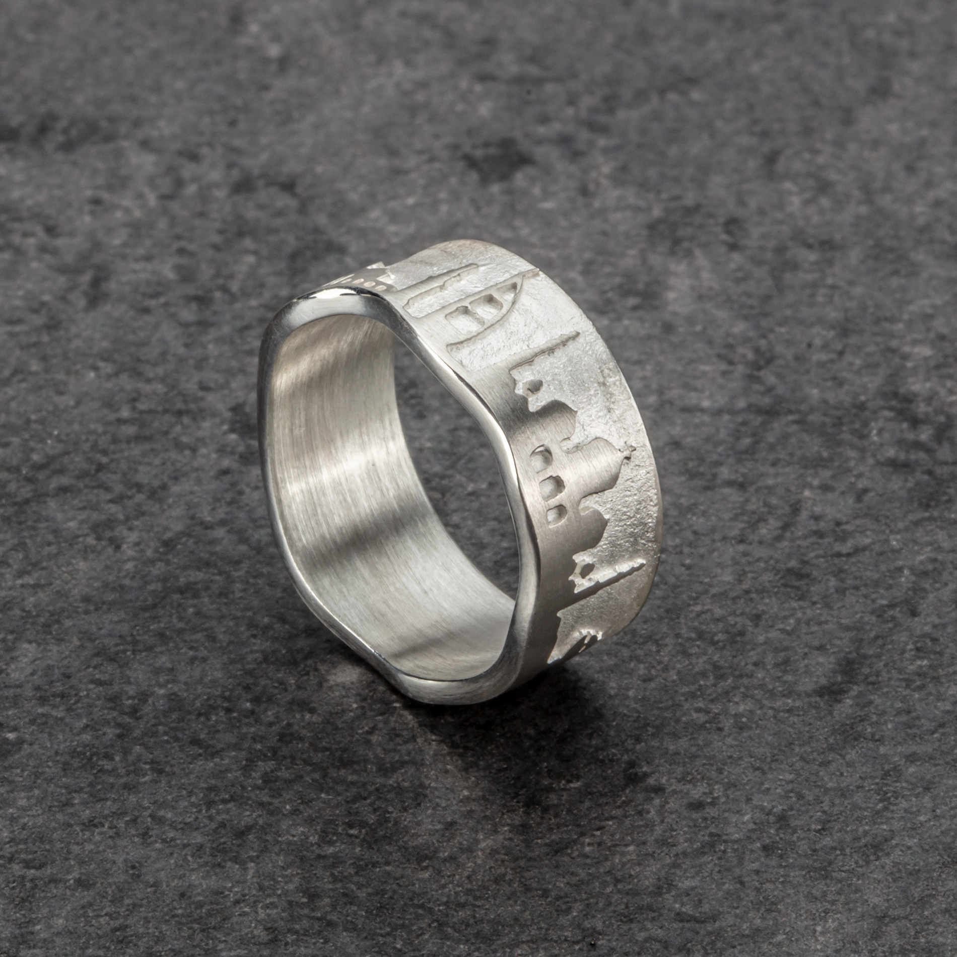 Der Orient-Ring aus 925er Sterling-Silber wird Sie immer an Ihre traumhafte Orient-Reise voller Überraschungen und bleibender Eindrücke erinnern. Die Welle am unteren Rand des Ringes symbolisiert das Meer und unterstreicht den maritimen Charakter Ihrer Reise. Der Ring wird in einer Rostocker Goldschmiedewerkstatt handgefertigt und hat je nach Ringweite eine Ringbreite von ca. 9 bis 10mm. Er besitzt ausgezeichnete Trageeigenschaften, ist formschön und solide gearbeitet.