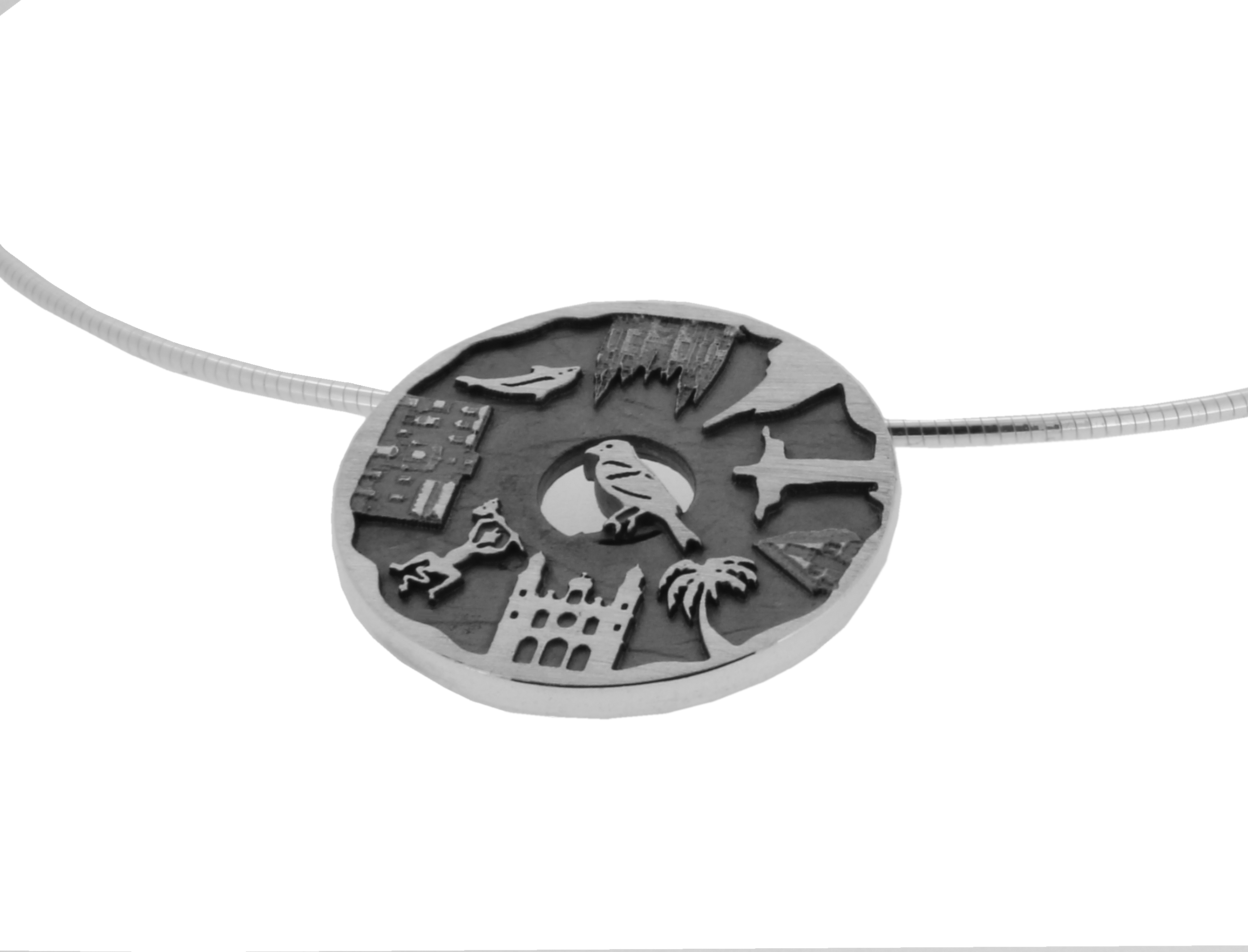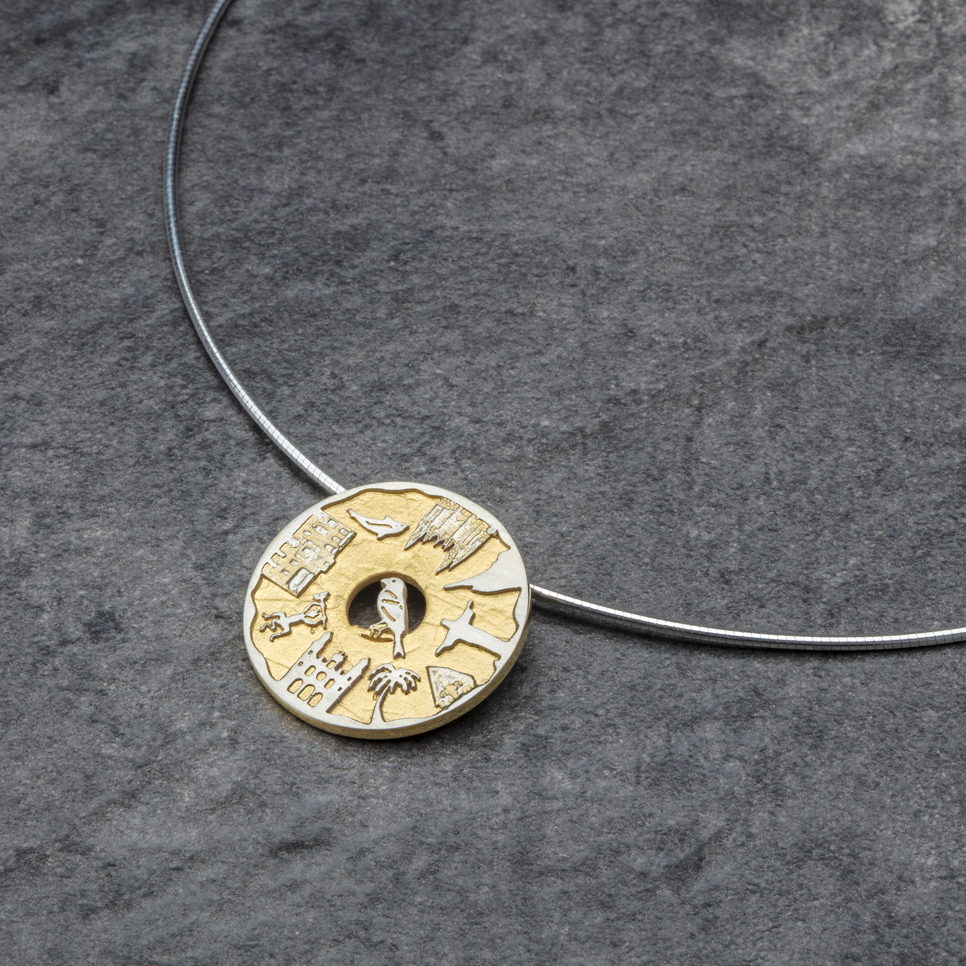 Der Routen-Anhänger “Kanaren” aus 925er Sterling-Silber nimmt Sie mit auf die Reise rund um die Kanarischen Inseln und ist eine bleibende Erinnerung! Der Anhänger wird in einer Rostocker Goldschmiedewerkstatt handgefertigt und hat einen Durchmesser von ca. 29,5 mm.